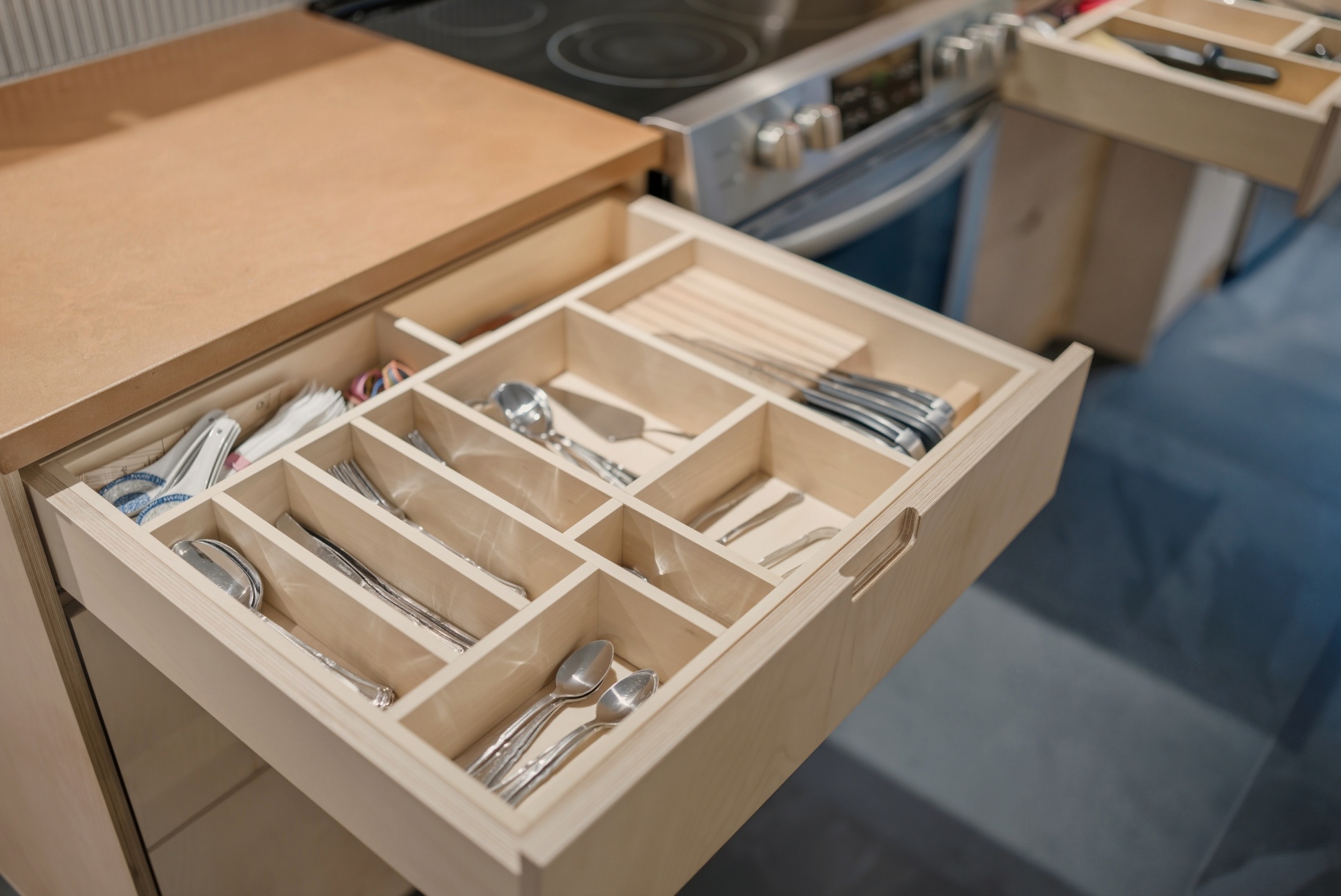 Crafted entirely from Baltic cherry, this custom-made set reveals the wood’s inherent nobility in a beautifully smooth, natural finish. Every line is meticulously considered, every detail executed with intention. The custom-divided drawers offer perfect, discreet, and elegant organization—a natural extension of everyday life. Timeless furniture, designed to last, to touch, and to enhance the space.