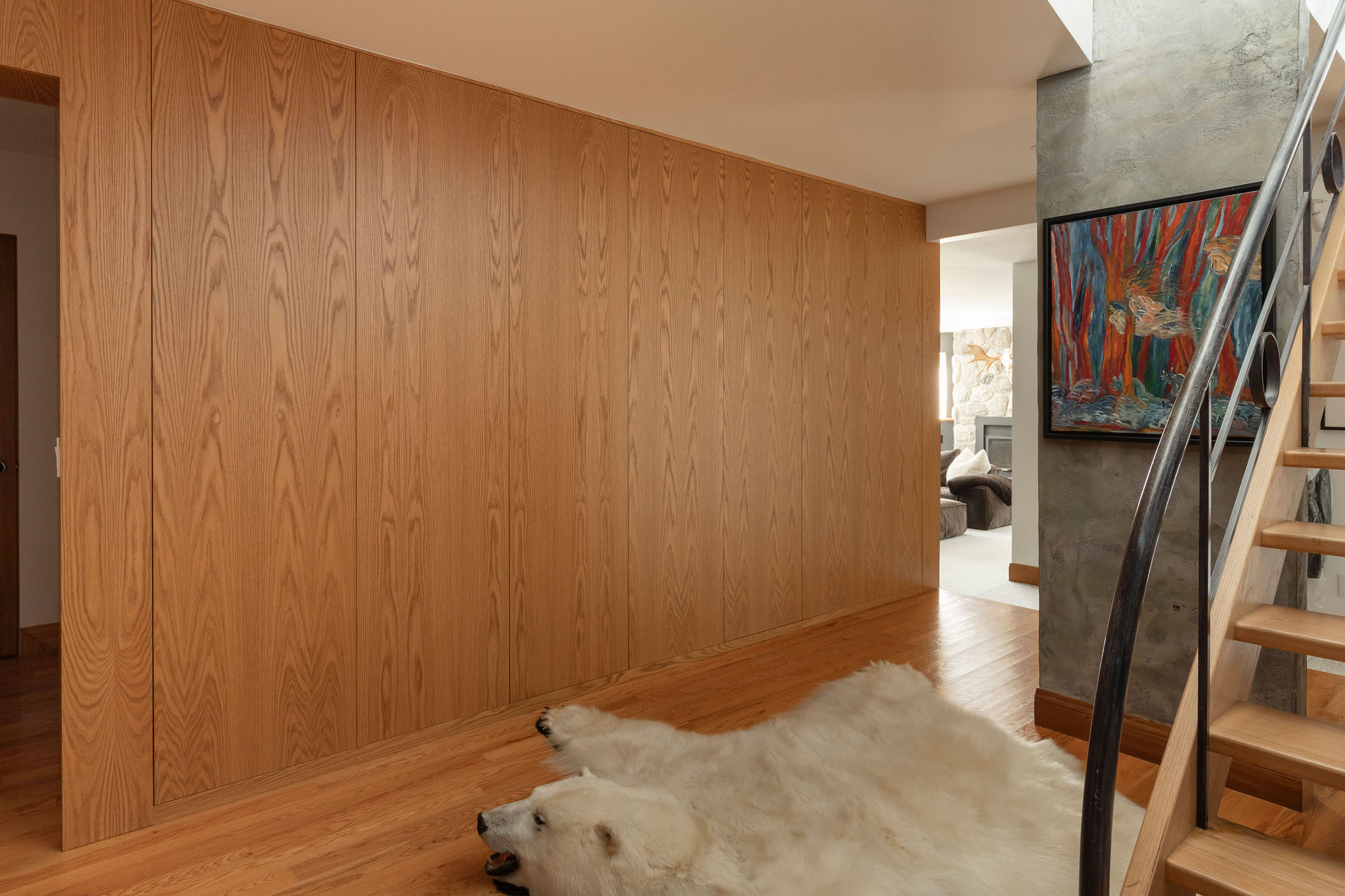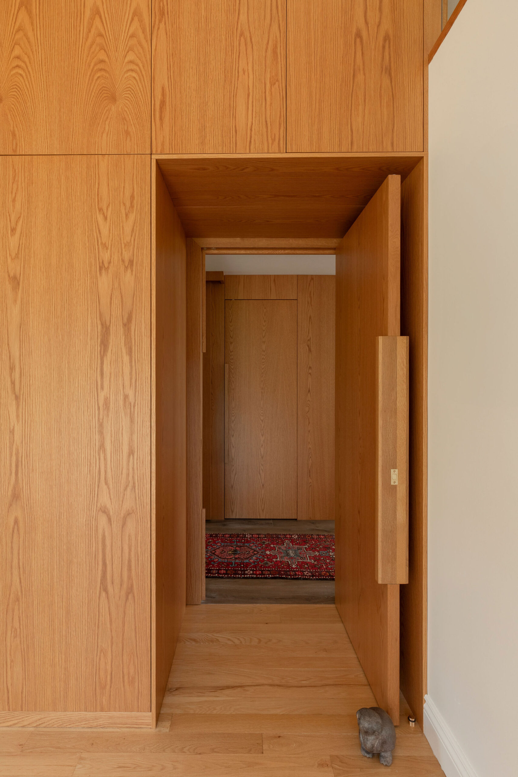 In this residence, bespoke design becomes a true signature. All the white oak panels were crafted exclusively for this house, from a single tree—precisely peeled to ensure consistent grain and impeccable harmony.