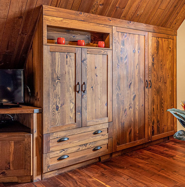 Wall storage in stained and varnished cherry veneer.