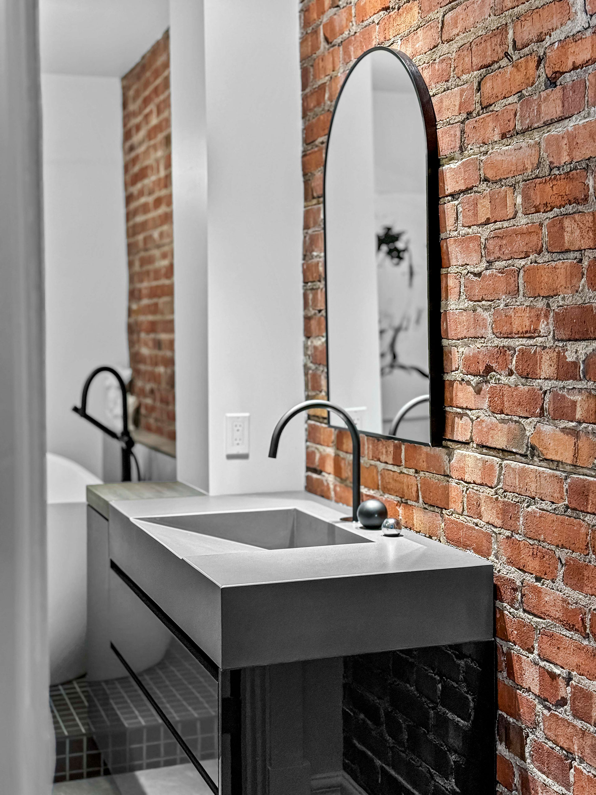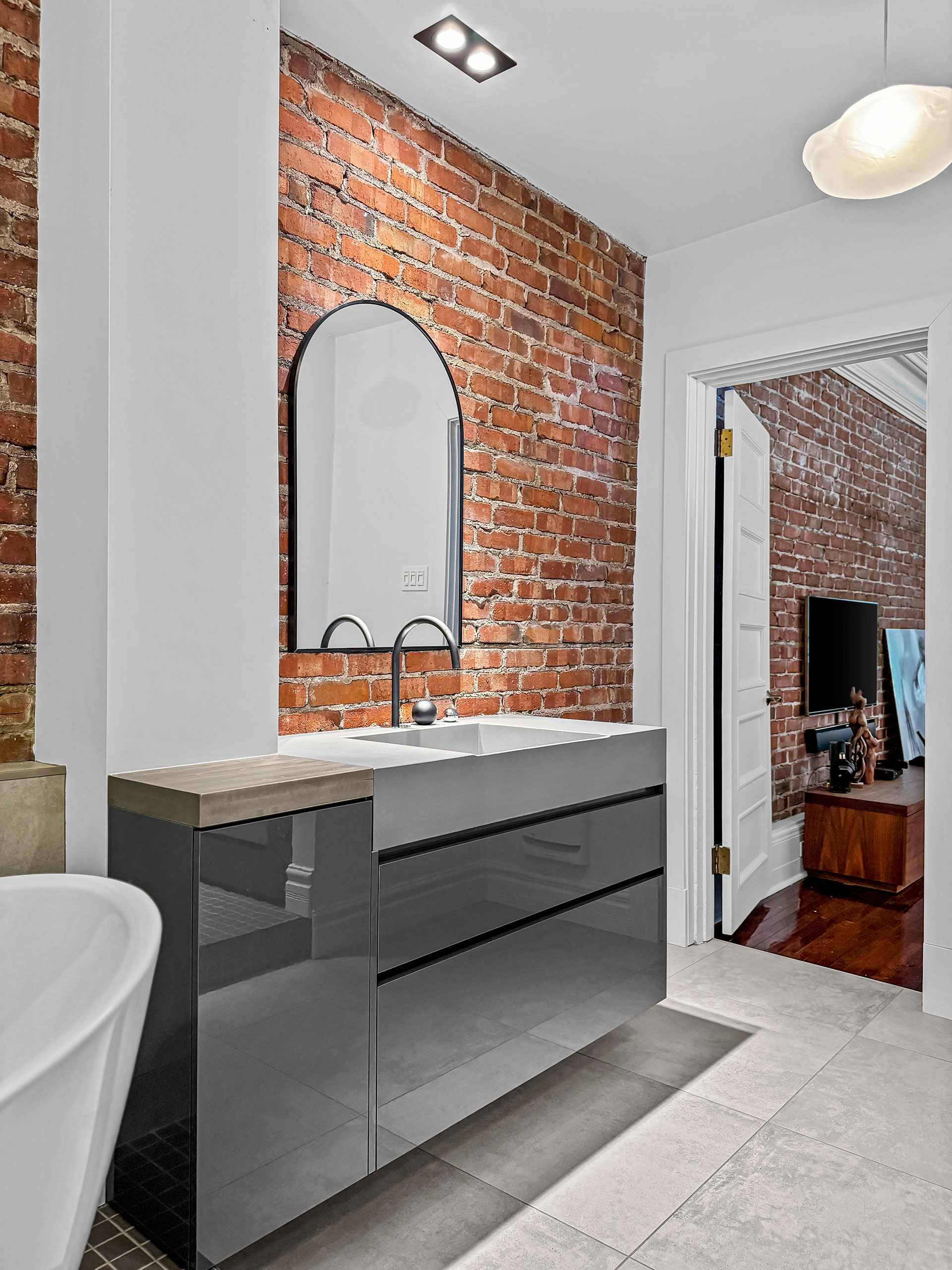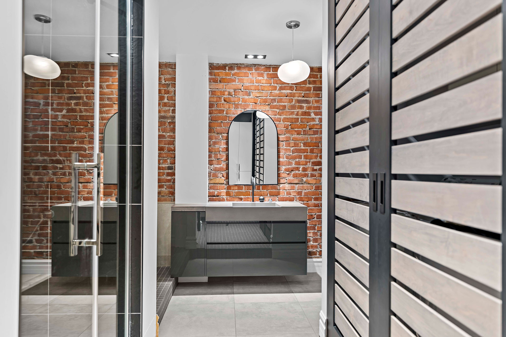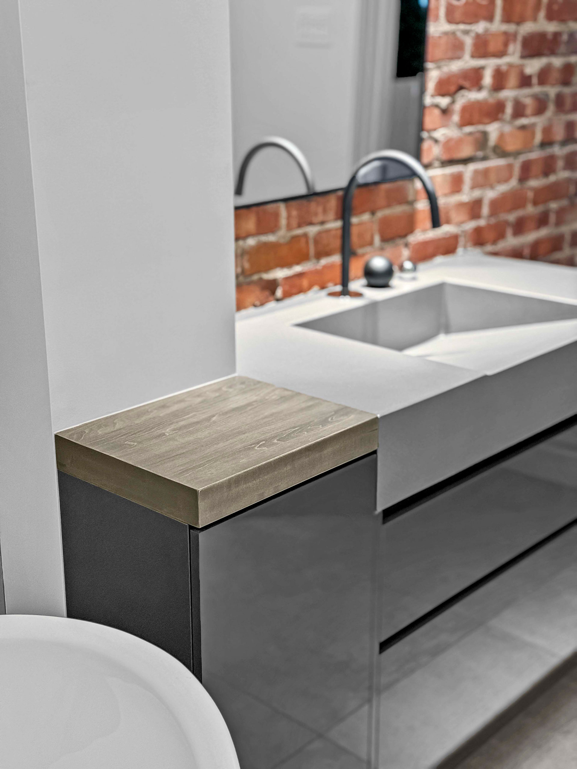 Portes en merisier avec lattes médianes huilées grises à l’aide des produits Livos et cadre teint en noir avec un vernis mat.