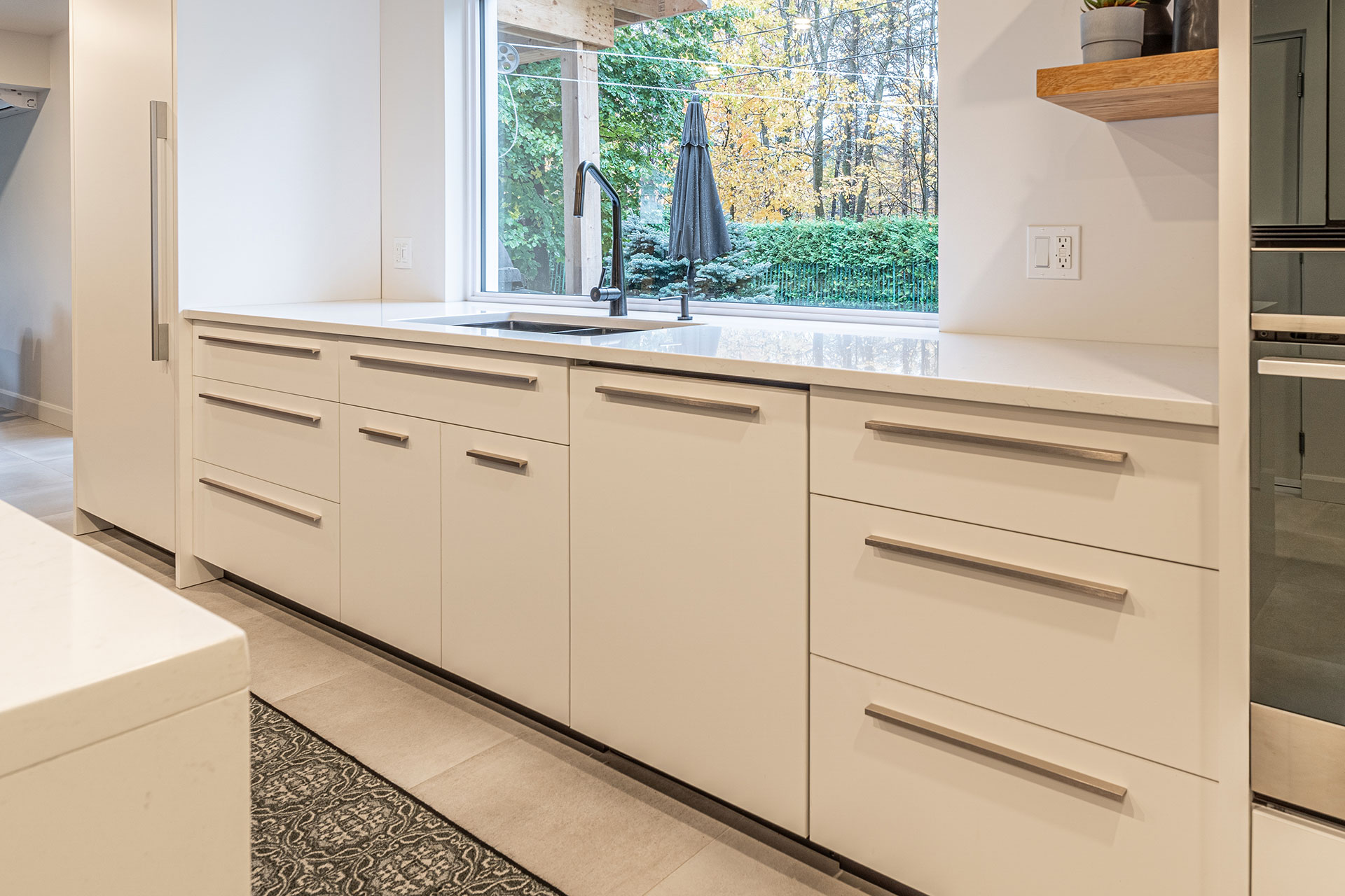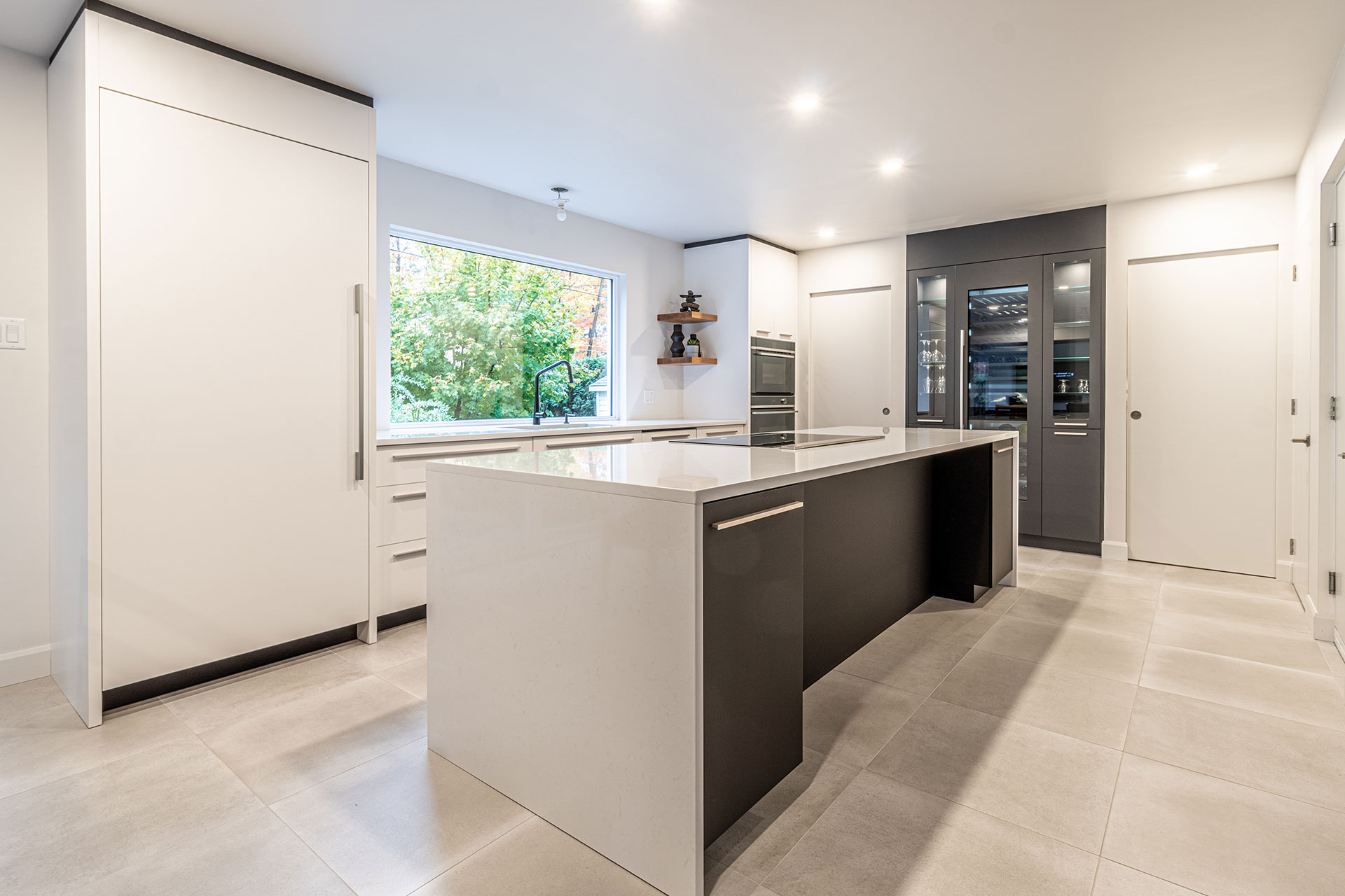 Aménagement sur mesure de plusieurs espaces haut de gamme au modernisme épuré.